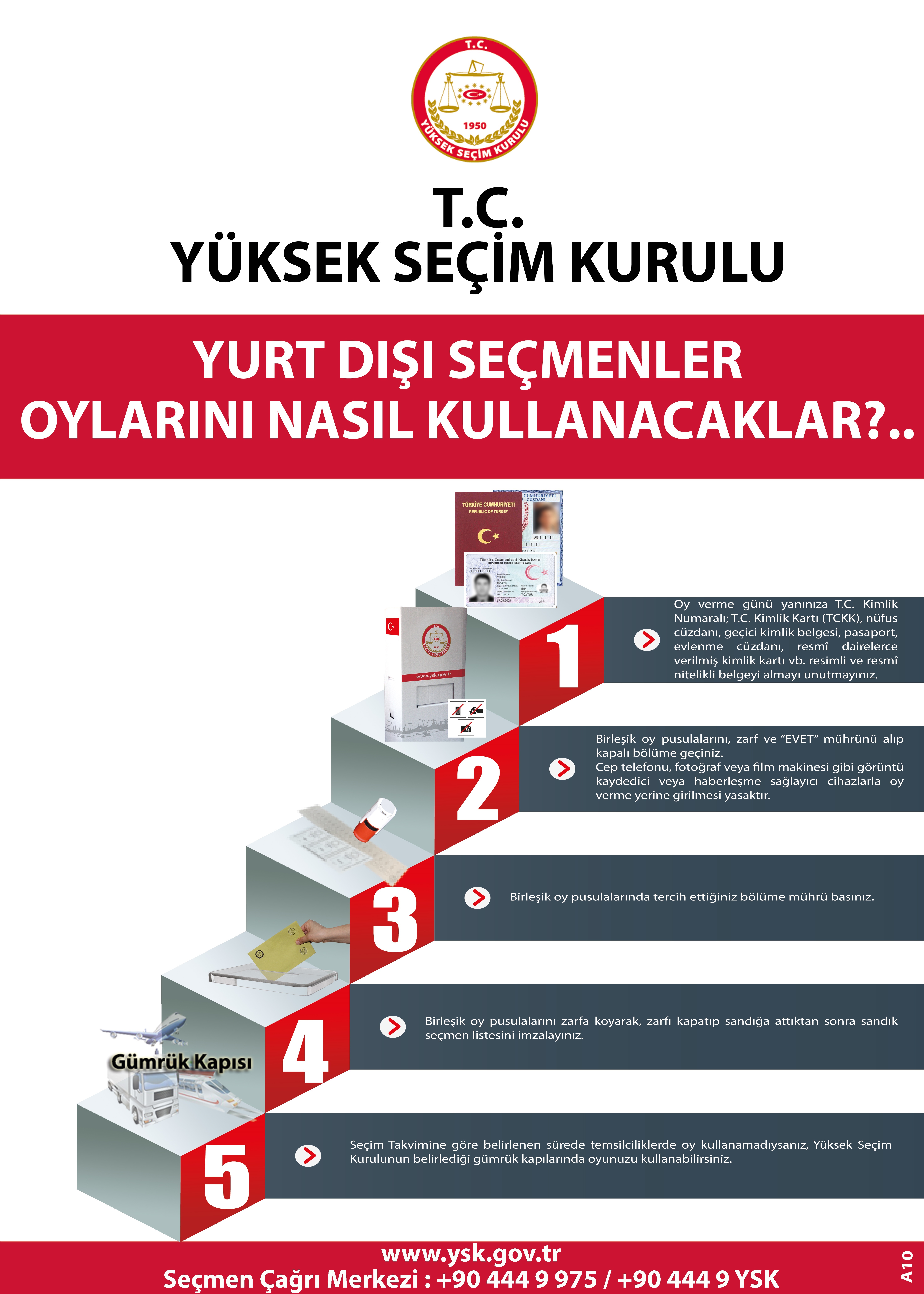 Cumhurbaşkanı ve 27'nci Dönem Milletvekili Genel Seçimi kapsamında Yüksek Seçim Kurulu tarafından yurt dışında oy kullanacak vatandaşlarımıza yönelik hazırlanan afiş örnekleriektesunulmaktadır.