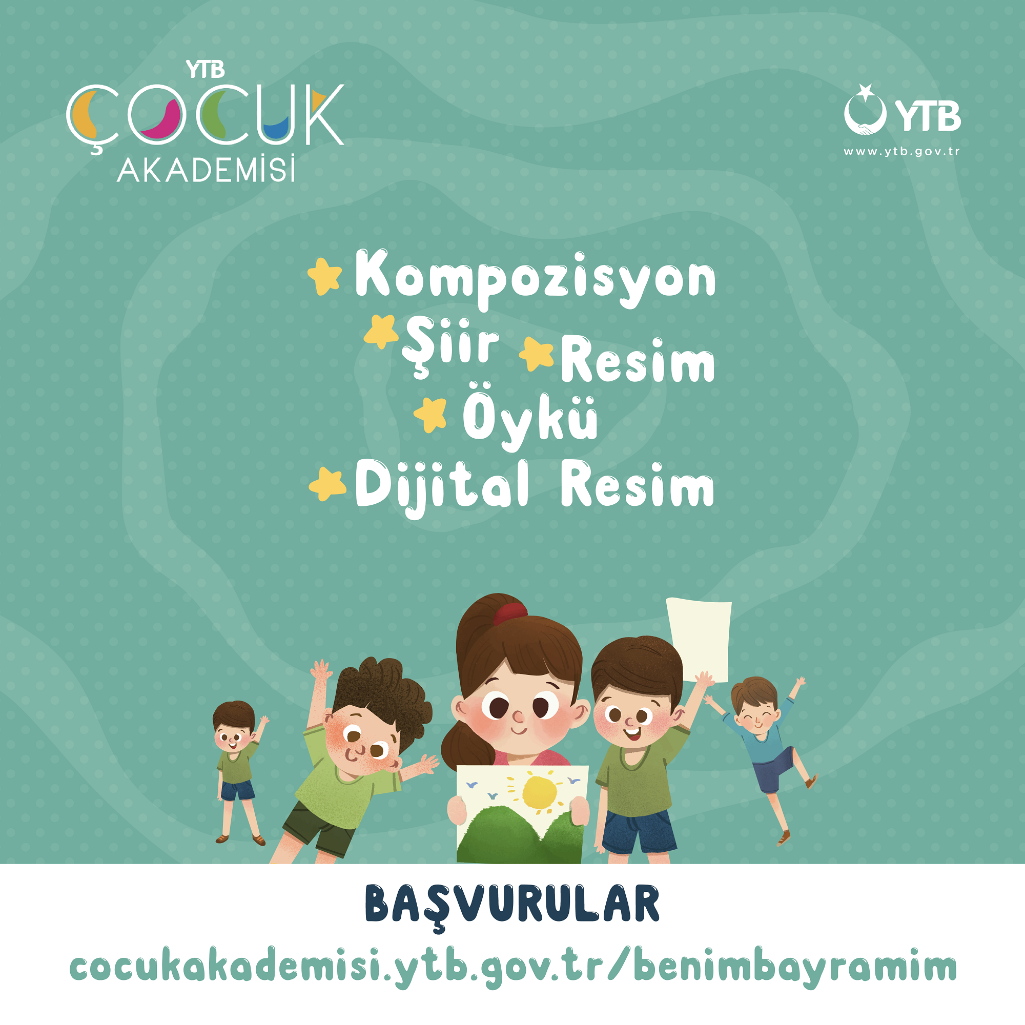 Yurtdışı Türkler ve Akraba Topluluklar Başkanlığı (YTB), yurtdışında yaşayan 4-14 yaş arası Türk vatandaşı olan, çifte vatandaşlığı bulunan veya mavi kart sahibi çocuklarımızı kompozisyon, şiir, öykü, resim ve dijital resim olmak üzere 5 kategoride “Benim Bayramım” yarışmasına davet etmektedir.